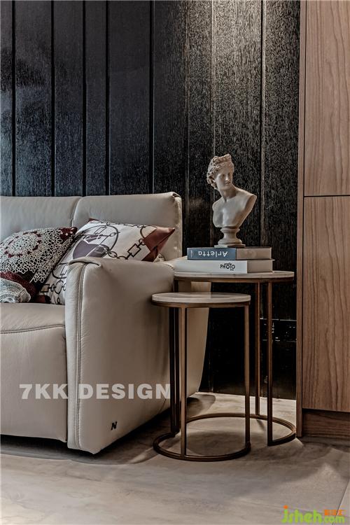 沙發(fā)邊幾上錯(cuò)落擺放黑白書籍搭配藝術(shù)雕塑裝飾,打破 一些單調(diào)、生硬的線條,獲得更完美豐富的空間感受