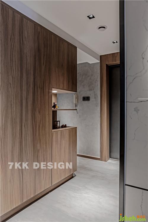進(jìn)門玄關(guān),原始戶型進(jìn)門玄關(guān)比較狹小,把原始廚房一分為二,外側(cè)做了整體的收納玄關(guān)鞋柜裝飾柜一體,里面做一排一字型廚房操作臺面。玄關(guān)鞋柜鏤空設(shè)計(jì),空間透明,內(nèi)嵌筒燈,增加光線照明,隨手放置進(jìn)出的鑰匙包包物品,很方便。