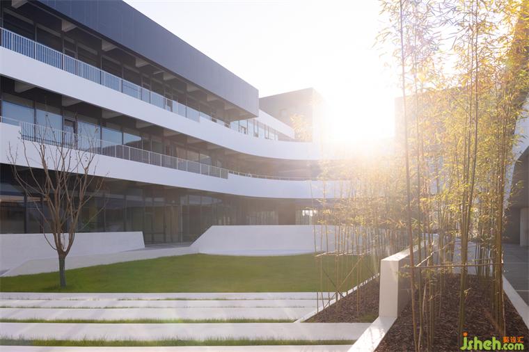 柏麗德祿亞太生產(chǎn)研發(fā)總部被設(shè)想為一個(gè)微型環(huán)境,承載研究、實(shí)驗(yàn)、管理、展覽和產(chǎn)品發(fā)布等功能。從平面上,四個(gè)相互交錯(cuò)的矩形體量保護(hù)著一個(gè)長(zhǎng)條形的庭院。從剖面上,底層的大型體量由人造石材勾勒而成,而玻璃幕墻覆蓋的二層則是一個(gè)由鋅板包裹的雕塑體量。建筑的外部造型深受德國(guó)跑車(chē)(如寶馬M1)棱角分明的線條的啟發(fā)。研發(fā)總部設(shè)計(jì)內(nèi)部花園是研發(fā)中心所有部門(mén)的中心聚會(huì)場(chǎng)所,花園也是一個(gè)非正式的室外舞臺(tái),設(shè)有階梯式座位和中央舞臺(tái)。所有三層辦公空間都向內(nèi)部花園開(kāi)放,既能采光,又可借助陽(yáng)臺(tái)和露臺(tái)通向中心空間。修長(zhǎng)的庭院也讓人聯(lián)想到永恒的意大利都靈的菲亞特工廠。