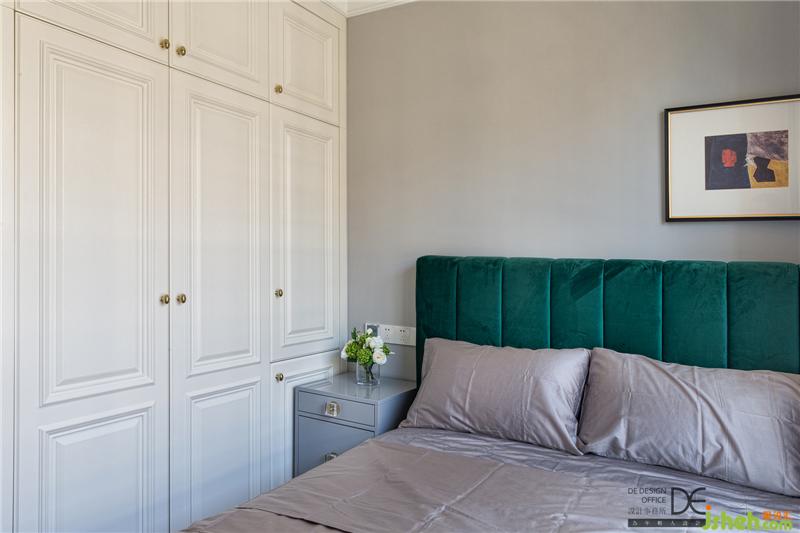 次臥多在老人過(guò)來(lái)居住時(shí)使用,整體風(fēng)格典雅而嫻靜,旨在打造舒適安靜的睡眠空間。