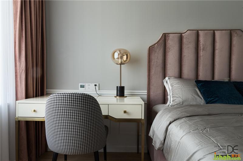 女兒房用藍(lán)灰和粉色打造,潔凈明亮;絲絨床背輔以金屬擺件,精致乖巧。已經(jīng)畢業(yè)的女兒悄悄長(zhǎng)成了大姑娘,所以床頭的妝臺(tái)設(shè)計(jì)必不可少;花瓣造型的吊燈,輔之玻璃材質(zhì)的通透,柔美而浪漫。