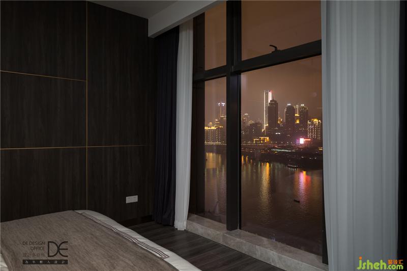 臥房區(qū)域有著極好的視野,晚上可以盡情欣賞窗外的燈火闌珊,早上也可以感受清晨的第一縷陽(yáng)光。連接櫥柜的區(qū)域是一面開放式的衣柜,完全足夠放下夫婦二人暫居的衣物。