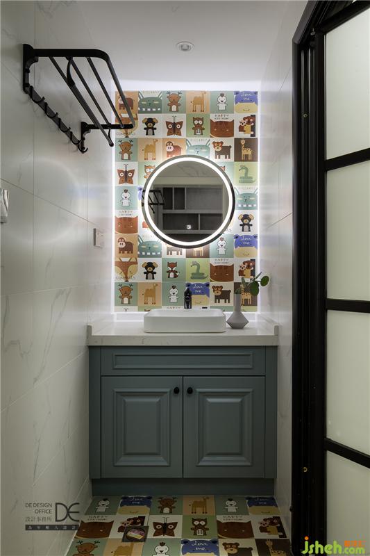 選磚時(shí),業(yè)主夫婦便對這款卡通磚“一見鐘情”,可愛的卡通磚搭配圓鏡,讓衛(wèi)生間更顯俏皮。不管是客廳的電視墻、小猴邊幾,餐廳的燈具、裝飾畫,還是廚房的花磚、衛(wèi)生間的卡通磚……這些奇趣元素的點(diǎn)綴,讓這個(gè)溫馨之家妙趣橫生。