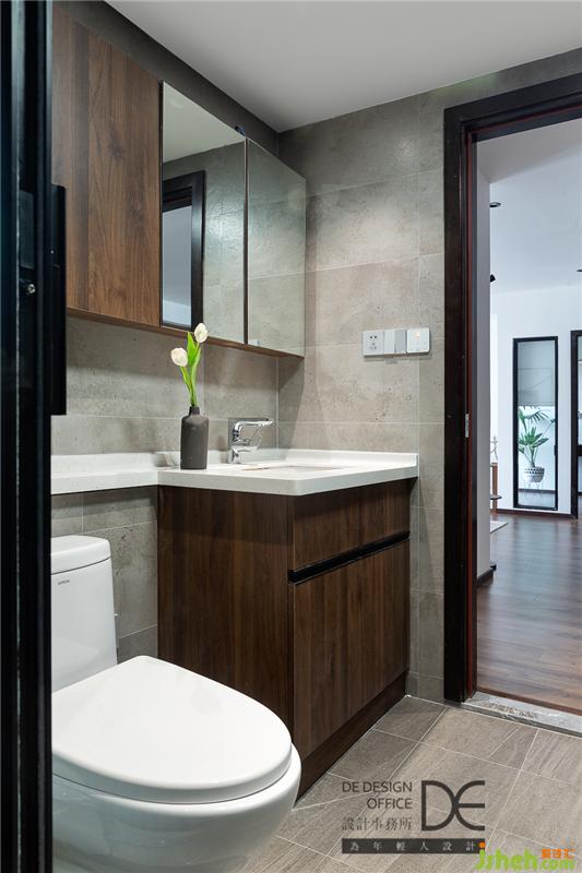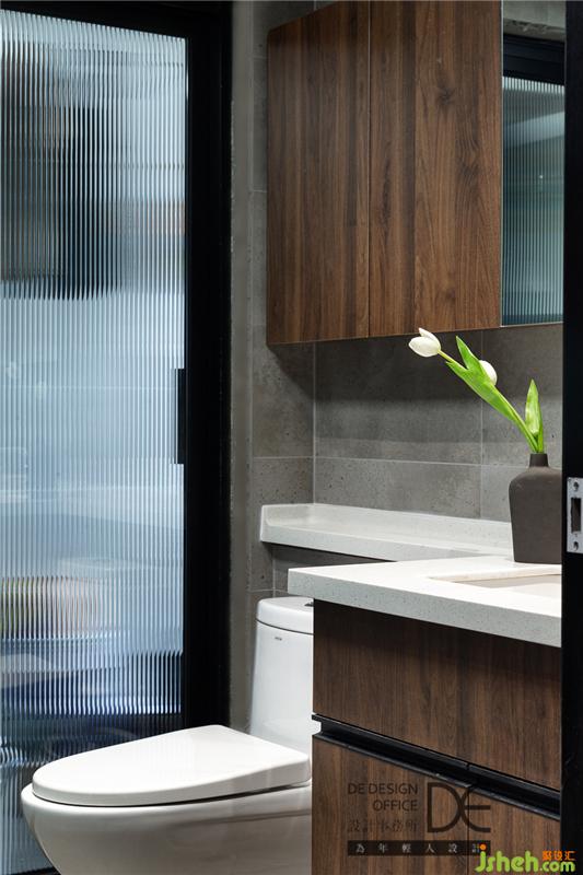衛(wèi)浴空間緊湊實(shí)用,與廚房相呼應(yīng)的柜體豐富了儲(chǔ)物空間,連通生活陽臺(tái)的滑門設(shè)計(jì)增加了空間的通透感。