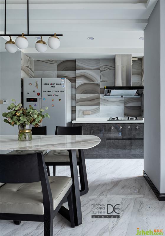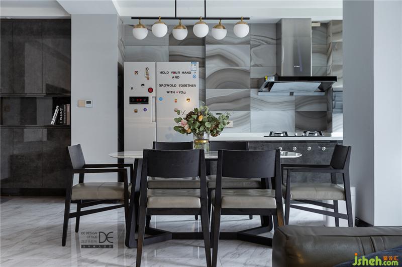 重慶室內(nèi)設(shè)計師打通廚房、餐廳和客廳,讓三個區(qū)域的使用功能得以穿插結(jié)合。開放式的廚房,讓業(yè)主在享受烹飪時光的同時,也能很好地與家人互動。最平淡而又最浪漫的事,莫過于下班后兩人一起下廚,飯后和狗狗們一起在沙發(fā)上嬉笑打鬧。