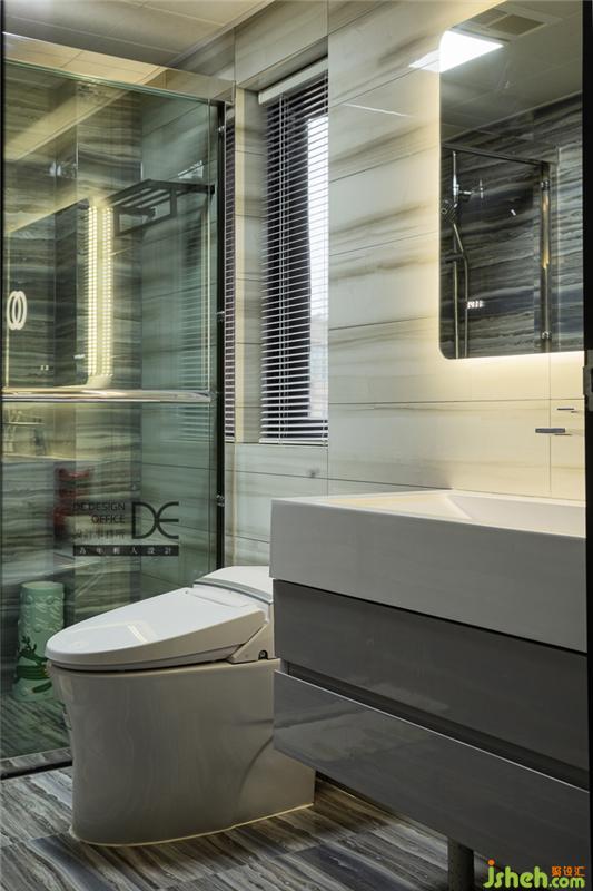 兩個(gè)衛(wèi)生間都采用了主色搭配白色的組合方式,不同色彩和材質(zhì)的排列,賦予了不一樣的靈動(dòng)之感。