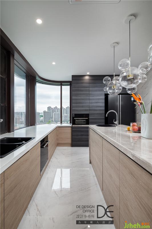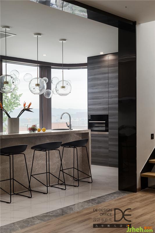 超大的島臺(tái),超贊的視野,島臺(tái)搭配高腳凳,營造出優(yōu)雅情調(diào)的早餐區(qū),同時(shí)也能做做西餐、洗洗水果。在這里,窗外是風(fēng)景獨(dú)好,窗內(nèi)是廚房與愛。