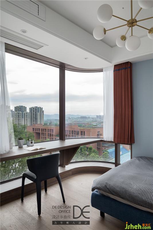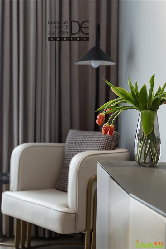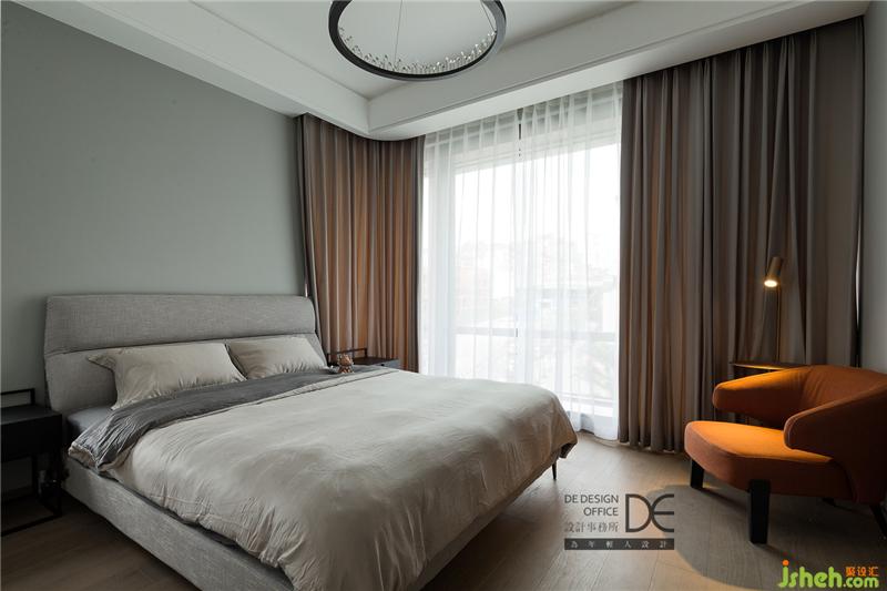 在重新規(guī)劃了戶型結構之后,老人房依舊足夠?qū)挸?。沉穩(wěn)的配色,冷而不冽,單椅和金屬落地燈無形中為這里增色不少。