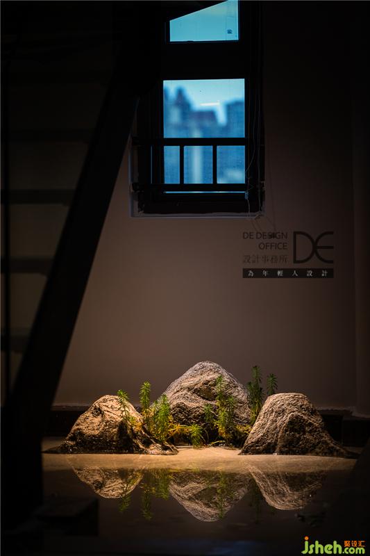 樓梯下的造景魚池,是這個家里獨樹一幟的風景。光影效果下,小魚池也是一個山川湖海大世界。