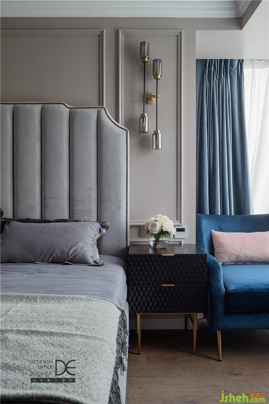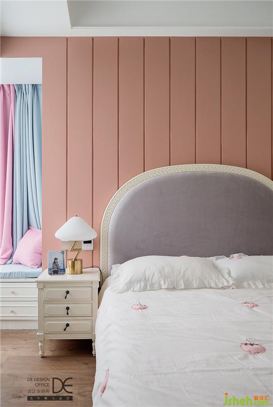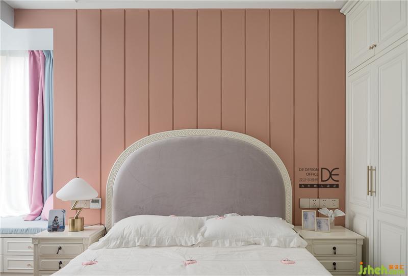 在女兒房的裝修設計上,硬裝打底運用了當下最流行的藕粉色和灰色穿插,床頭背景做了簡單的線條處理,讓整個空間看起來更立體。搭配上軟裝設計師精心挑選的家具和飾品,整個空間看上去甜美溫馨。