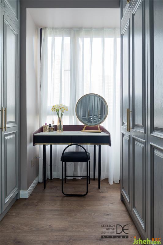 衣帽間是女主人最喜歡的區(qū)域。從事美容行業(yè)的她,時尚而精致,愛她的老公怎么能不讓她有個屬于自己的獨立衣帽間呢?衣帽間整面的柜體,滿足了儲物需求,里面放置了女主人心愛的香水、包包、衣物……中間空出的區(qū)域還可以作為練瑜伽的地方,可謂是一舉多得。