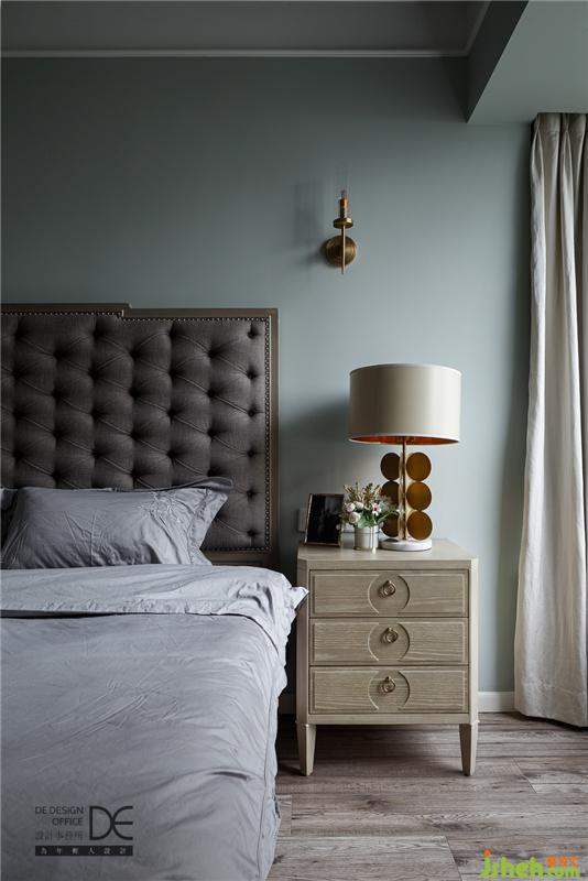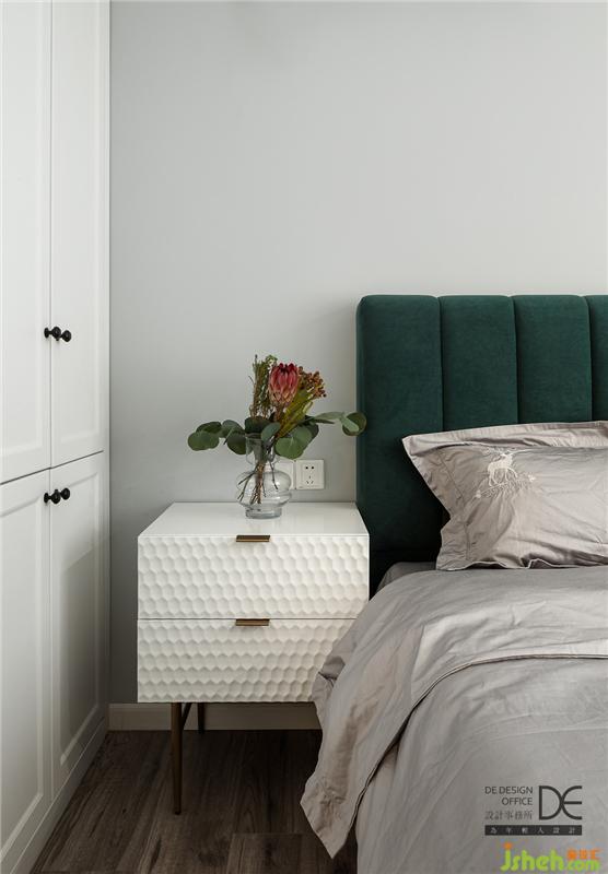 次臥的色彩相對跳躍一些,灰色和墨綠色的碰撞,讓空間多了幾分層次。在典雅氣息的空間里,夢也格外美好。