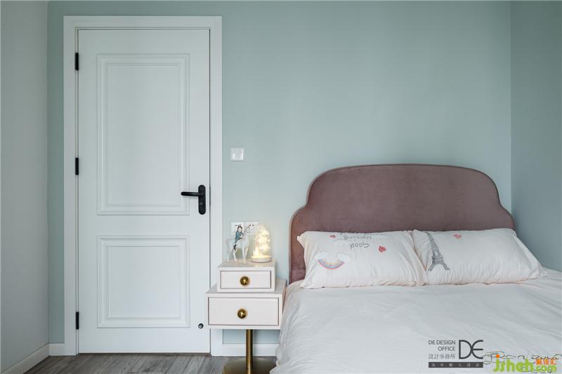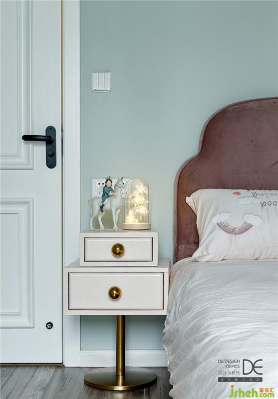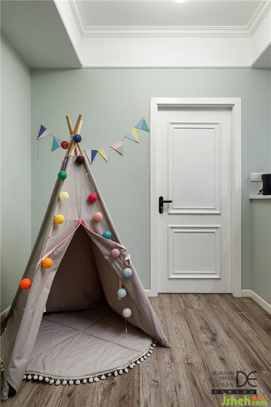 女兒房的色彩溫馨舒適,灰綠色、灰粉色和灰色的組合,給人淡淡的安寧感。原始陽臺的部分空間也納入了女兒房,采光得到更好地提升。落地窗視野極好,為小朋友營造了一個舒適自然的成長環(huán)境。