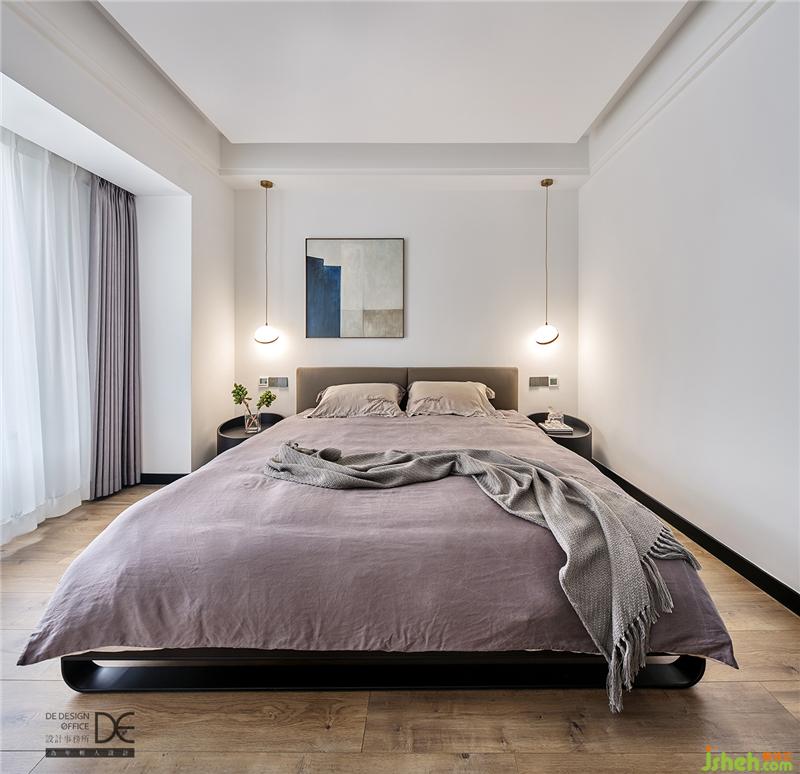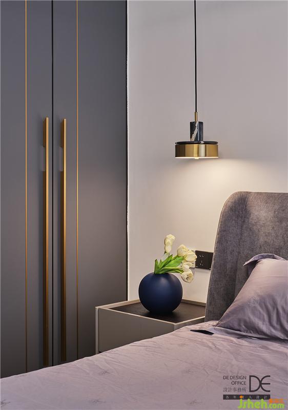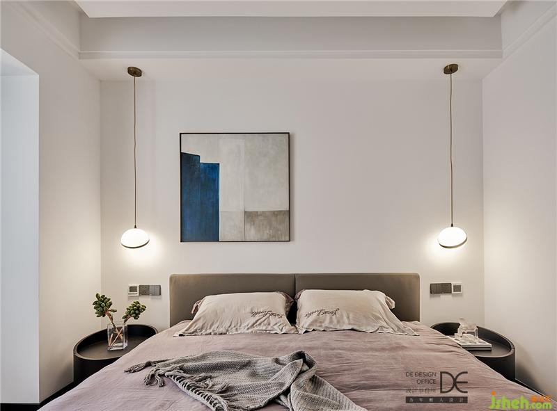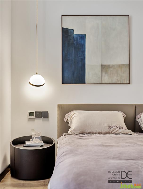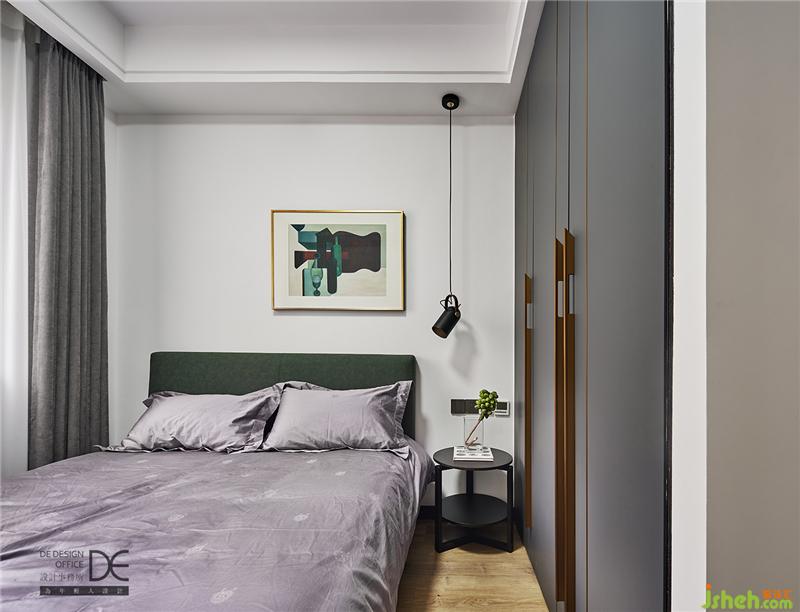 為避免主臥出現(xiàn)空間擁擠,設(shè)計師打破床頭柜旁邊就是衣柜的常規(guī)設(shè)計,讓睡眠區(qū)域在空間和視覺上更顯寬敞和舒適。