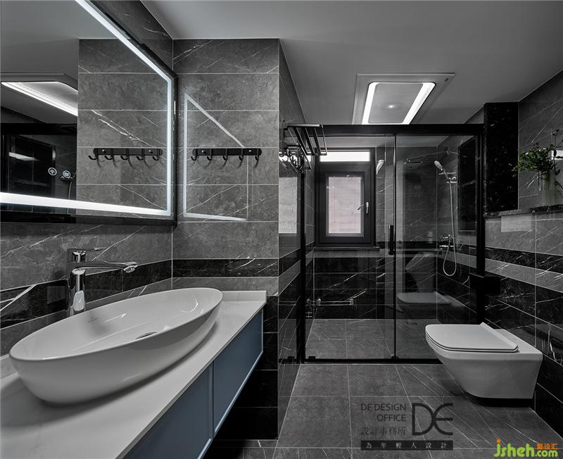 公衛(wèi)的尺寸不能滿足實際的需求,設(shè)計師調(diào)整結(jié)構(gòu),借用衣帽間的位置做衛(wèi)浴柜。次衛(wèi)在結(jié)構(gòu)改動后使用空間增大,能滿足馬桶和小便池的同時布置,而且不管是前期使用的潔凈,還是后續(xù)父母年紀大了需要加裝扶手之類的調(diào)整,都能夠滿足。