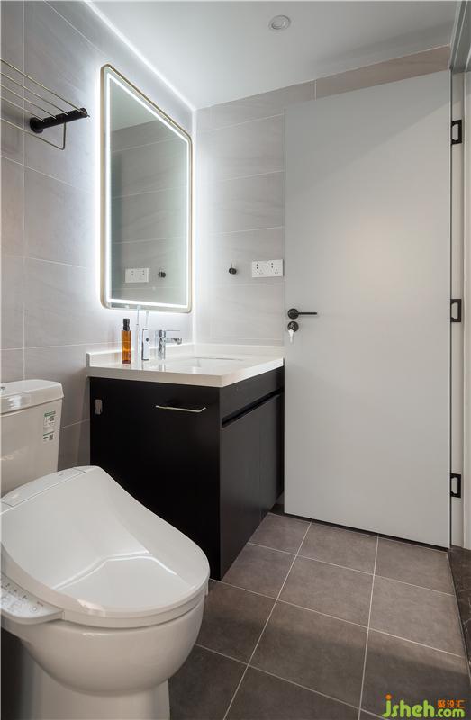 衛(wèi)生間原本的空間較小,在設(shè)計(jì)師的調(diào)整下做了干濕分離,淺色瓷磚配上智能馬桶,干凈而實(shí)用。