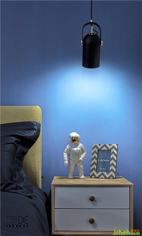 兒童房設(shè)計為藍(lán)色調(diào),像浩瀚大海,也似星辰宇宙,代表著智慧和勇敢,給予孩子充分的想象和創(chuàng)造靈感,希望他在這里的氛圍中,開拓屬于自己的小世界。