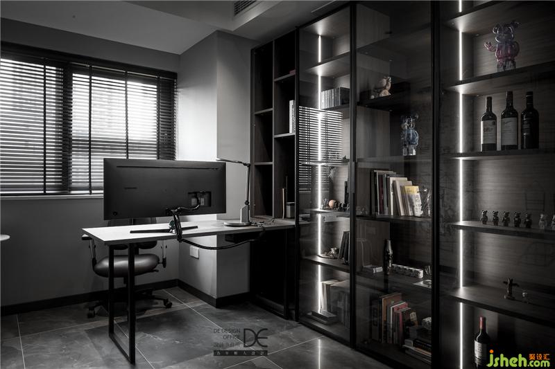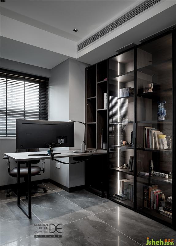 建筑行業(yè)的小姐姐總是給人一種酷酷的感覺,所以在書房設(shè)計(jì)上,也不乏線條元素的出現(xiàn)。玻璃展示柜里擺放的是業(yè)主的心愛之物,書房承載著業(yè)主的喜好,也記錄著她安靜思考的痕跡。