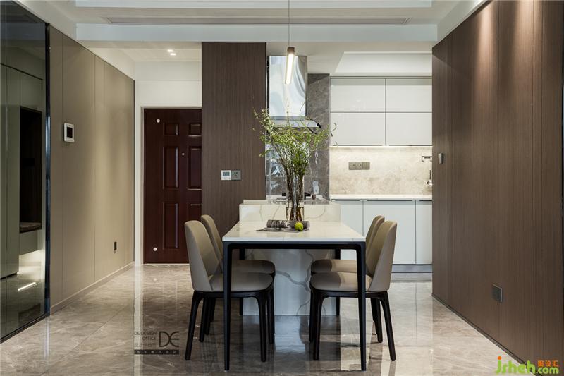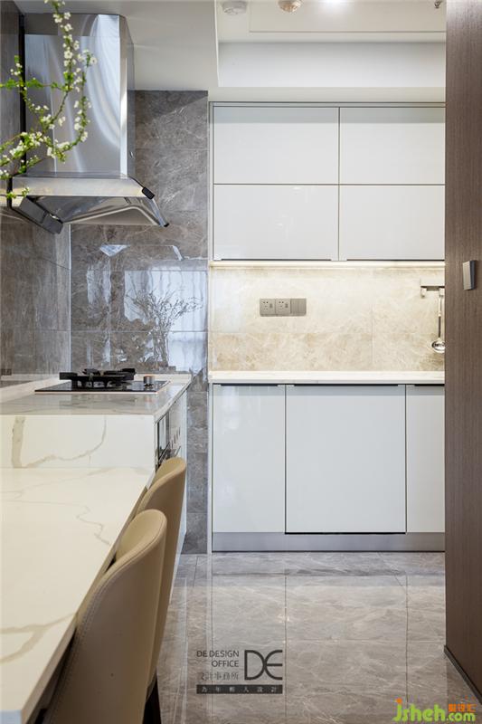 裝修設(shè)計(jì)過程中,設(shè)計(jì)師將原來的廚房墻體拆除,讓餐廳和櫥柜相連,餐桌采用了廚房巖板臺(tái)面,廚房空間得到延伸。這種讓兩個(gè)空間合二為一的做法,既讓空間得到釋放,變得更大,又讓使用更加方便。改造為開放式廚房不僅釋放了空間,將室內(nèi)的光線做了一定的提升,還能增強(qiáng)家人間的互動(dòng)。