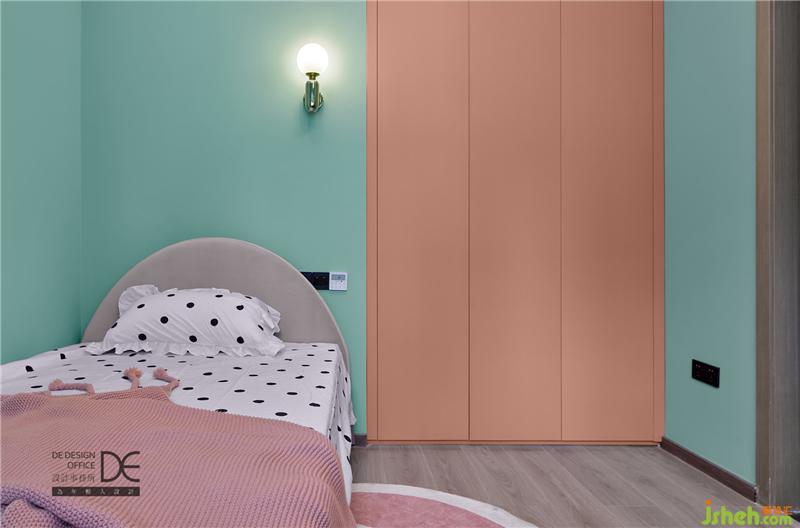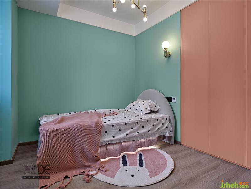 淺綠色的墻壁配上臟粉色衣柜,黑白波點(diǎn)床單加可愛(ài)兔子地毯,整個(gè)空間的少女感呼之欲出。給天真浪漫的小妹妹居住,太適合不過(guò)了!