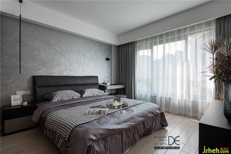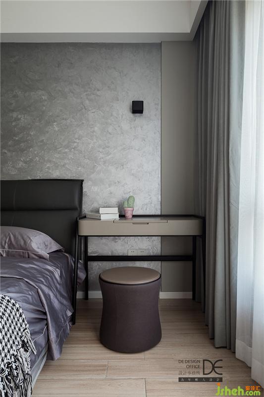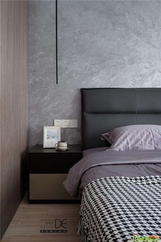 與客廳沙發(fā)墻“同款”的背景墻搭配灰色墻面,擺上頗有藝術(shù)氣息的油畫,整個(gè)睡眠空間更富層次感。