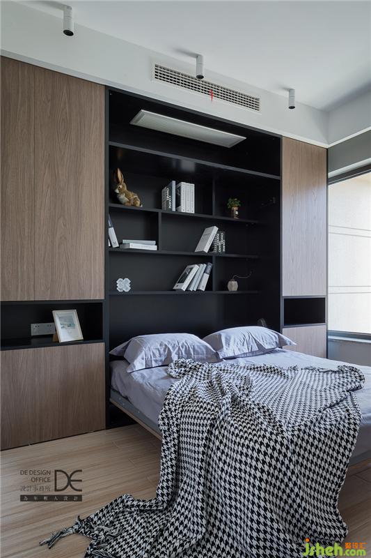 多功能室真正體現(xiàn)了“麻雀雖小五臟俱全”。翻板床的加入,讓這個(gè)空間的功能更加豐富。翻板床平時(shí)外觀如同衣柜,可以留出更多的活動(dòng)空間;睡覺時(shí)將柜門翻下,就是一張舒服的大床。