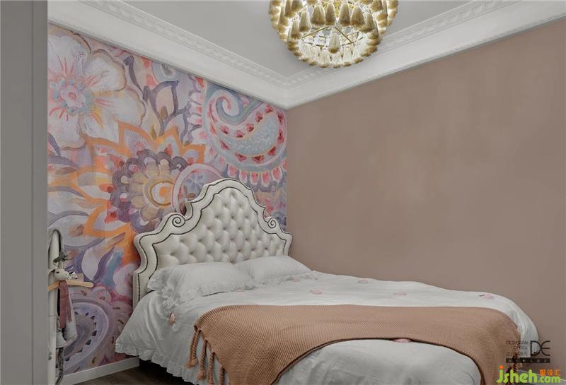 粉色的背景墻搭配白色的床,干凈素雅,讓人鎮(zhèn)定。立體的壁紙畫讓整個(gè)空間看起來更加的生動,樂趣無窮。