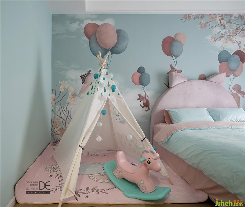 每一個女孩心里都藏有一個“公主夢”。本期的兒童房便圍繞著“童心與童話”,為業(yè)主家的小妹妹搭建一個夢想中的“小城堡”。童趣十足的墻紙,貓耳朵床頭,粉色小木馬,藏著對童年最好的期盼。