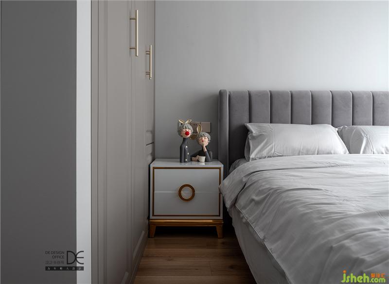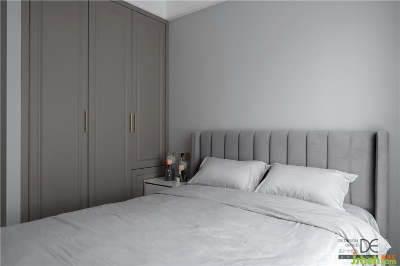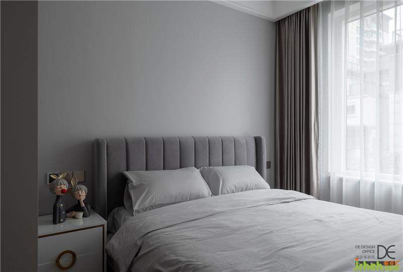父母房設(shè)在一樓,出門即是衛(wèi)生間,最大程度方便老年人日常活動,減少樓上樓下來回跑動的次數(shù)。房間整體色系采用了低調(diào)沉穩(wěn)的灰色系,乍一看,自有一股舒適寧靜的感覺。