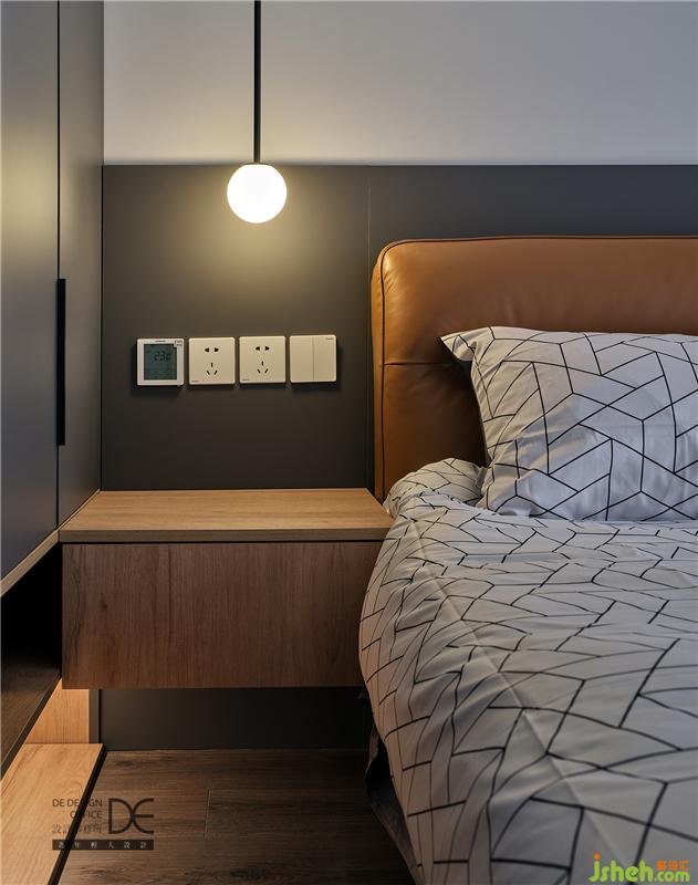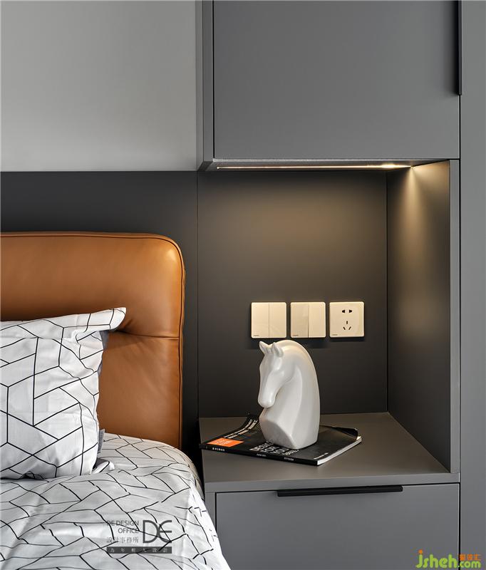 整個(gè)父母房為一體式設(shè)計(jì),衣柜/儲(chǔ)物柜/床頭柜/護(hù)墻靠背協(xié)調(diào)統(tǒng)一,增加了儲(chǔ)物性也不雜亂,同時(shí)又不失該有的質(zhì)感。