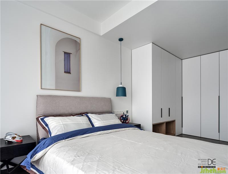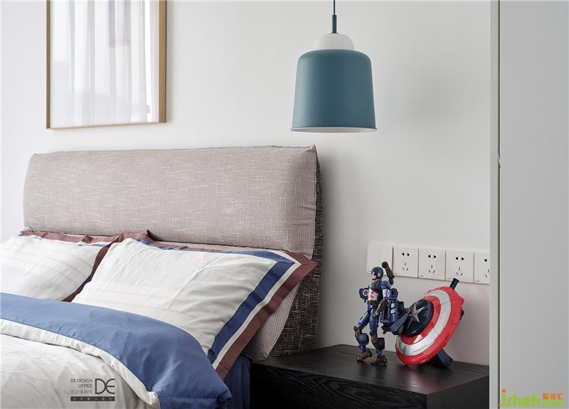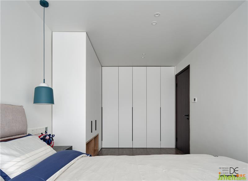 兒童房衣柜設(shè)計了小朋友放玩具的空間,位置較低,拿取方便。在衣柜內(nèi)部的設(shè)計也考慮到小朋友對應(yīng)的尺度,細(xì)節(jié)處理到位。藍(lán)色和紅色的碰撞也讓空間頗有童趣。