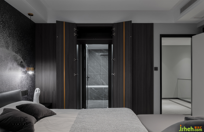 獨(dú)立臥室、獨(dú)立衣帽間、獨(dú)立衛(wèi)生間,形成睡眠區(qū)、衣帽區(qū)、洗浴空間的獨(dú)立分割,滿足男主精致有條理的生活習(xí)慣。