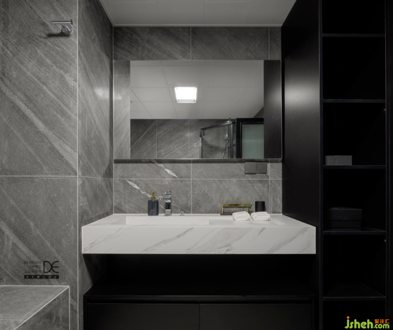 衛(wèi)生間延續(xù)空間的黑白灰調(diào)性,簡單純粹,彰顯空間質(zhì)感,于細(xì)節(jié)之處展現(xiàn)美感。