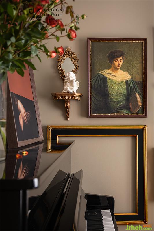 窗外是藍(lán)藍(lán)的天空,屋內(nèi),被微風(fēng)輕撫的多頭玫瑰淡淡的散發(fā)著若有似無(wú)的香味,精致得體的美好讓人享受當(dāng)下;文藝復(fù)興的裝飾畫傳遞出對(duì)藝術(shù)的思考;托腮思考的小天使雕像安靜地待在黃銅托盤鏡中,享受藝術(shù)熏陶。獨(dú)坐在鋼琴上,家的樂章在緩緩的彈奏中沁入心間。
