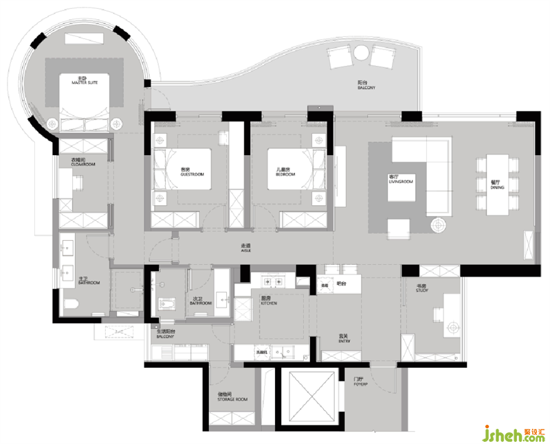 從全屋的功能收納,還有入戶玄關(guān)到符合人體工程學(xué)設(shè)計的客廳家具,從廣闊明亮的餐廚區(qū)到淋浴和浴缸相結(jié)合的衛(wèi)浴布局,我希望業(yè)主在這個空間生活的每一天都能怡然自得。
