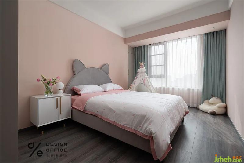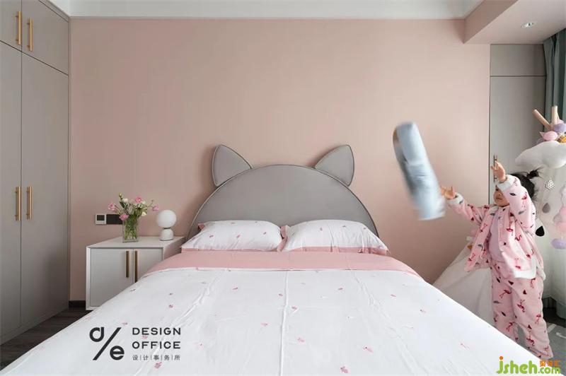 整個(gè)空間依然以粉為主色彩元素,將粉與灰的搭配做到了極致。豐富、自由、快樂、有趣,是孩子的童年精心搭配的軟裝,巧妙合理的布局讓空間擁有充分的安全感。