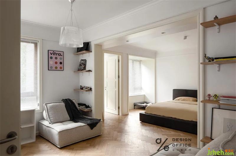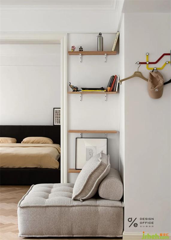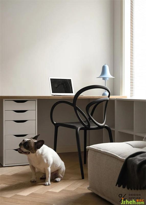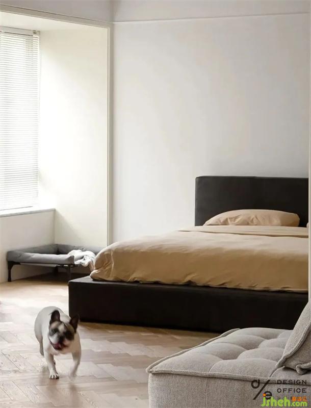 角落為狗狗安置的小窩,無(wú)不體現(xiàn)出對(duì)它的寵愛(ài),即使它愛(ài)打呼,愛(ài)調(diào)皮搗蛋。但是有它的日子,除了快樂(lè),就沒(méi)別的了。床頭業(yè)主的戀愛(ài)合照,是臥室唯一的裝飾品,簡(jiǎn)單卻又不可替代,屬于兩個(gè)人的私密空間,合適舒服才是最重要的,因?yàn)橹挥袩釔?ài)生活的人才會(huì)記錄生活的點(diǎn)滴。