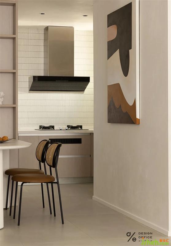 整個(gè)軟裝色彩搭配,餐椅和單椅同色系的選擇,在奶色系上加了一些撞色,是整個(gè)空間統(tǒng)一而又有樂趣。簡約而又不失趣味,增加了空間視覺靈動(dòng)感。