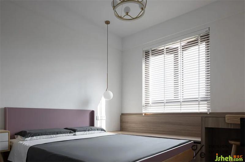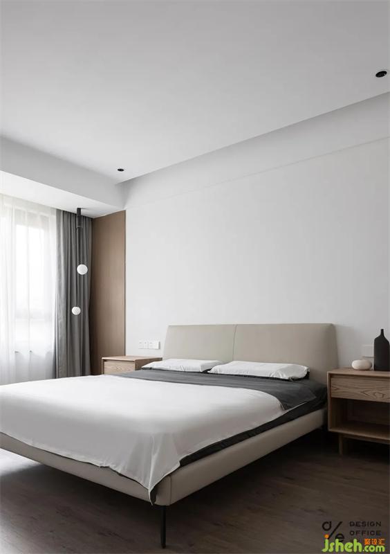 亮著溫和微光的床頭燈輕輕柔柔地照亮一角,空間氛圍愈發(fā)柔軟溫馨,抵消簡(jiǎn)約之下的疏離冷淡。