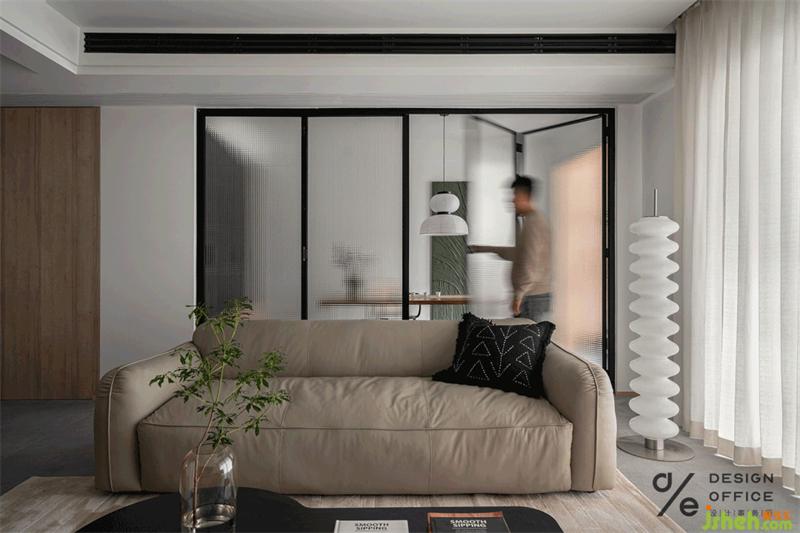 多功能室用折疊門隔斷,形成半開放式空間,既能封閉起來,形成獨(dú)立安靜的區(qū)域;又能打開與客廳連通,形成橫廳結(jié)構(gòu)。
