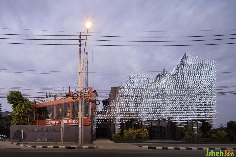 MoMA是Museum of Modern Aluminum的縮寫,項目源自于一群有雄心壯志的業(yè)主,以復(fù)興鋁在泰國的重要性為目標。泰國曾在20世紀末作為東南亞最大的鋁材制造國,其多樣又豐富的鋁型材不僅滿足本土市場,更一度以輸出海外市場聞名;然而1997年無預(yù)警的亞洲金融危機(Asian Financial Crisis),促使泰國引以為傲的鋁產(chǎn)業(yè)為了生存,以低價販售鋁型材給各地五金市場,導(dǎo)致雜亂的廣告招牌、陽臺圍籬、底層擴建構(gòu)成現(xiàn)今曼谷街頭的景色。
