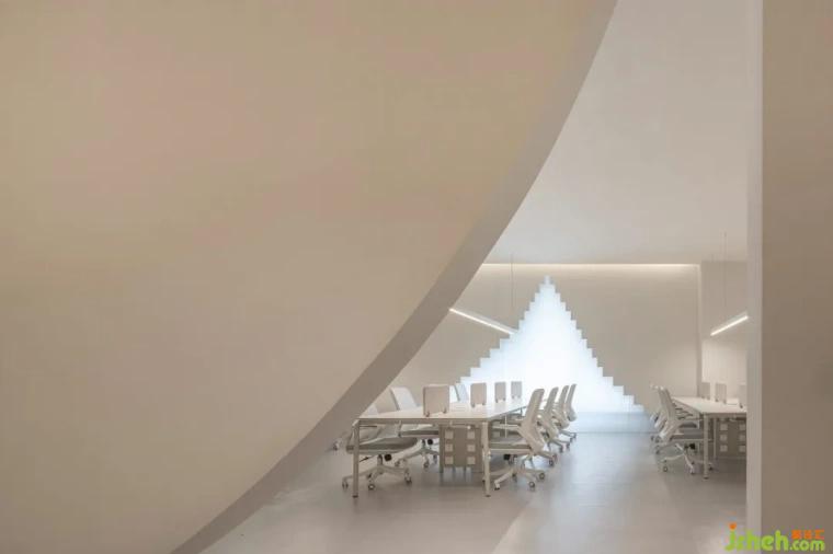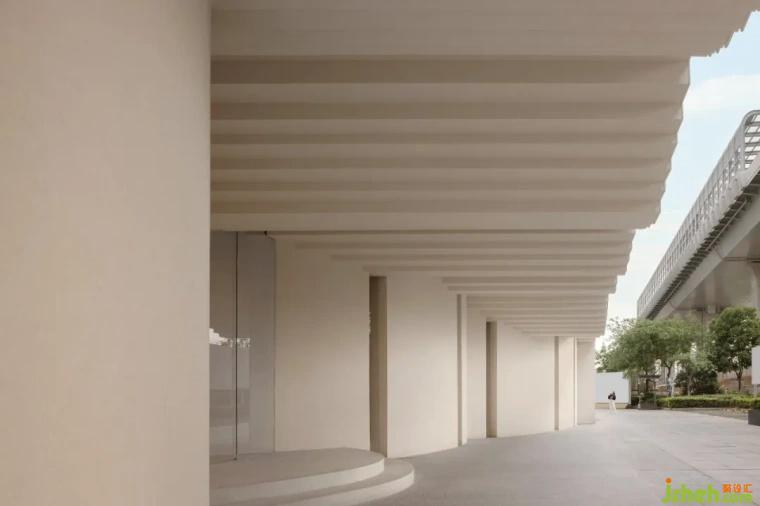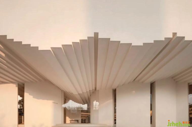 此外,Simple Art美術(shù)館鄰近于南淝河,該河流具有豐富的文化記憶與歷史價(jià)值,也被當(dāng)?shù)厥忻穹Q為合肥的母親河,特別是在平日夕陽照射所產(chǎn)生的水波浮動(dòng)效果,展現(xiàn)其河道受自然環(huán)境沖刷變化的千年歷史。因此,Hung And Songkittipakdee(HAS)將南淝河特有的水波,巧妙的轉(zhuǎn)換成空間感知,透過曲面的墻體與起伏的頂面,在午后夕陽光線滲透進(jìn)入室內(nèi)時(shí),頂面有如還原南淝河特有的水波浮動(dòng),其光線倒映著內(nèi)外上下整體空間,建筑本身猶如一幅抽象般的藝術(shù)畫作。該建筑不僅只是一個(gè)提供藝術(shù)展覽與文化交流的美術(shù)館,建筑師Jenchieh Hung與Kulthida Songkittipakdee致力透過空間,激發(fā)當(dāng)?shù)厝藢?duì)于美的好奇與渴望,并在鋼筋混凝土的城市中,帶來一處具有跨時(shí)代精神,連接傳統(tǒng)與當(dāng)代的文化建筑。