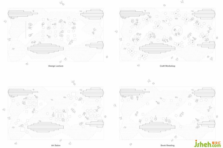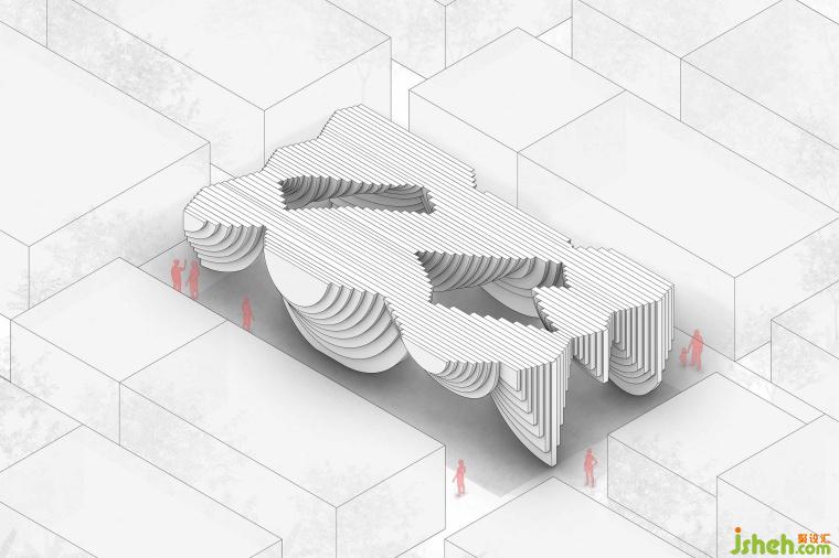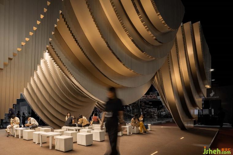 基于這樣的前提,HAS Design and Research建筑事務所提出了一個嶄新的設計,在繁忙且高密度的展會中,創(chuàng)造一處具有自然印象的山谷洞穴。這個泰國鋁石窟文創(chuàng)場不僅重現(xiàn)過去泰國人仰賴自然山水所提供住所與生活場景,更反映當今曼谷人均綠色開放空間僅有6.99平方米,遠低于世界衛(wèi)生組織的9平方米。在日常時段,向上抬升的建筑,制造底層架空的開放空間,一方面創(chuàng)造更多“灰空間”吸引大眾并延伸室內(nèi)外的環(huán)境,另一方面則對傳統(tǒng)泰式吊腳樓多功能“Tai toon”的呼應。到了特殊時刻,有如山谷的天光照亮整個空間,不僅提供教育、學習、論壇等功能,更讓空間產(chǎn)生一股“非日常性”的儀式感,從而賦予身心靈前所未有的感知體驗。