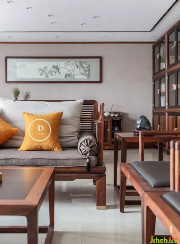 在眾多家具中,我們設(shè)計公司選擇了同樣以“簡潔”設(shè)計為理念的閱梨家具。闊葉黃檀與刺猬紫檀的中式家具,再配上橙色的布藝抱枕,沉穩(wěn)又不失時尚。