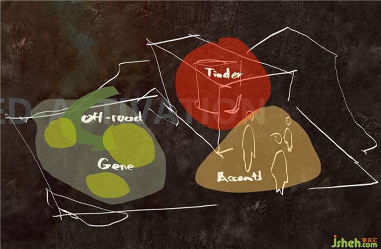 概念描述了一群在城市中生活的越野基因探索者們經過探索,相聚在“集結地”,重燃內心火種——重燃對自然與越野的熱望,召集更多同頻的探索者一起再次出發(fā),去探索沒有道路的地方和無窮壯麗的自然。