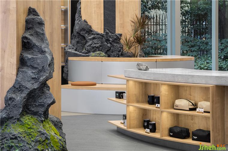 ▲石粉和永生苔蘚打造穿插在空間中的山體意象