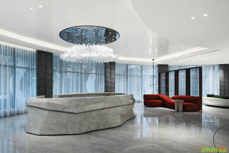 及目所至,全廳地面鋪設(shè)的卡里冰玉玉石,如靜水流深的沉寧。而墻面室內(nèi)設(shè)計師更是大面積采用紋理精美的 天然石材海冰藍作主空間的基調(diào),從而凝聚西湖的人文精粹,一種超越時間的清新雅致。