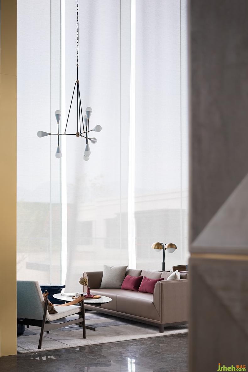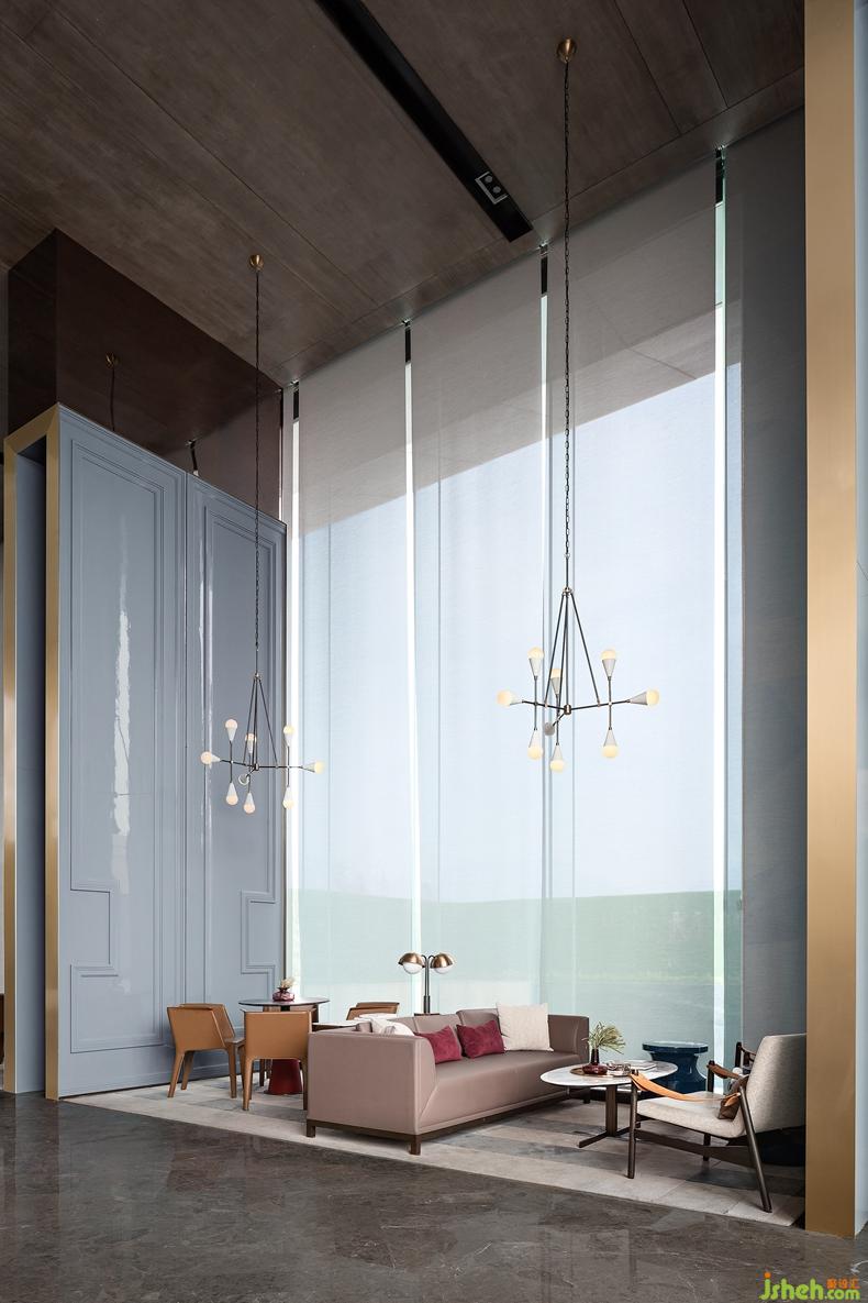 設計公司在軟裝設計初始,整個空間處于內(nèi)建筑表皮藝術(shù)的現(xiàn)代氣息,其配色與質(zhì)感都極其古典,且不談這些風格碰撞會產(chǎn)生怎樣驚艷的視覺效果,單單就設計師精準拿捏配色這一點,便順理成章的造就了這場視覺盛宴的催化劑。我們?yōu)榱顺删蛯哟畏置骱椭C統(tǒng)一的典雅氣質(zhì),為此一番匠心格斗。