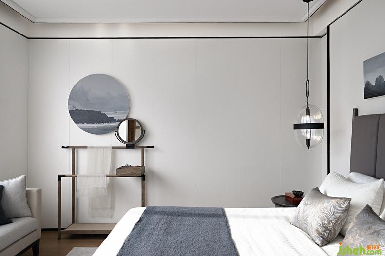 主臥空間是簡潔質(zhì)樸的設(shè)計,著墨不多,卻在不露聲色中流淌出涓涓禪意。別墅裝修設(shè)計棉麻、羊毛與木制搭配出細膩質(zhì)感,帶著濃濃古樸韻味的插花茶具小品修飾著空間,山水的意象在掛畫與床品上散著詩意,清透的玻璃透著微爍的光,這個休憩空間流露著一片素凈淡雅的美。