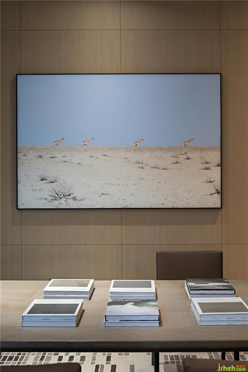 休閑區(qū)的設(shè)計更為雅澹靜美,純白與釉紅的融納相生,皮質(zhì)與布藝的搭配互映,成為空間的美學語匯。